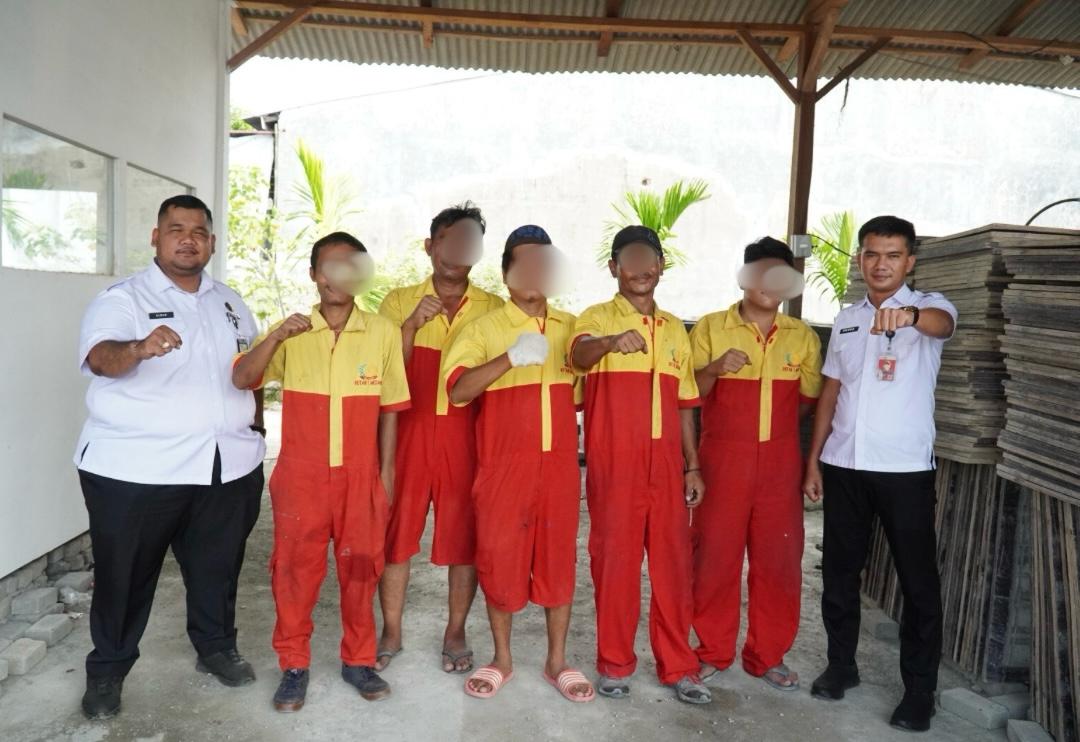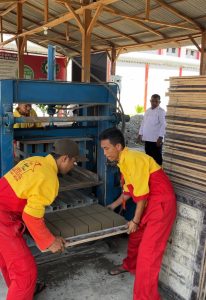 Warga binaan dilatih dalam proses pembuatan paving blok mulai dari pemilihan bahan baku hingga proses pencetakan dan pengeringan.