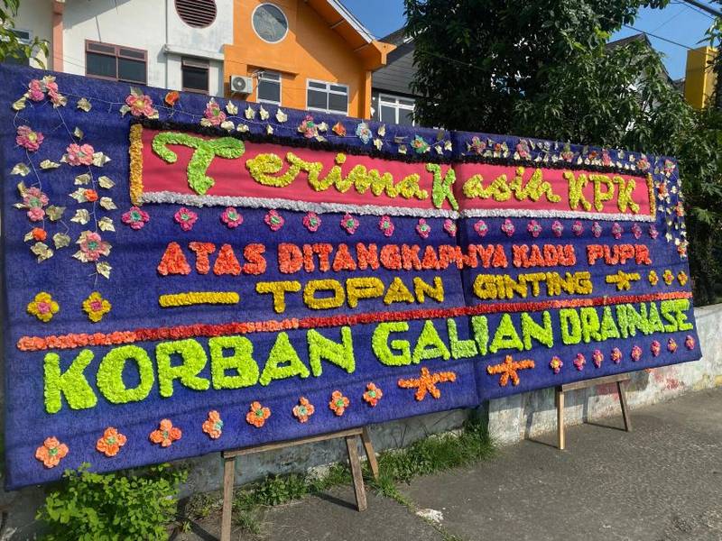 Sejumlah titik tempat terpajang papan bunga tersebut tampak terlihat juga di seputaran tepi jalan Lapangan Merdeka, Jl Pulau Pinang, Medan Sumatera Utara. Papan bunga yang bertuliskan “Terima Kasih KPK atas ditangkapnya Kadis PUPR Sumut Topan Ginting”