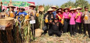Sementara Kapolsek mengapresiasi kegiatan panen raya jagung yang dilaksanakan oleh petani binaannya.
