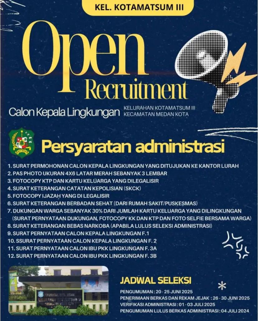 Ia menyebut, dugaan tersebut muncul salah satunya di Kelurahan Kota Matsum III, khususnya dalam proses seleksi Kepling Lingkungan 10.