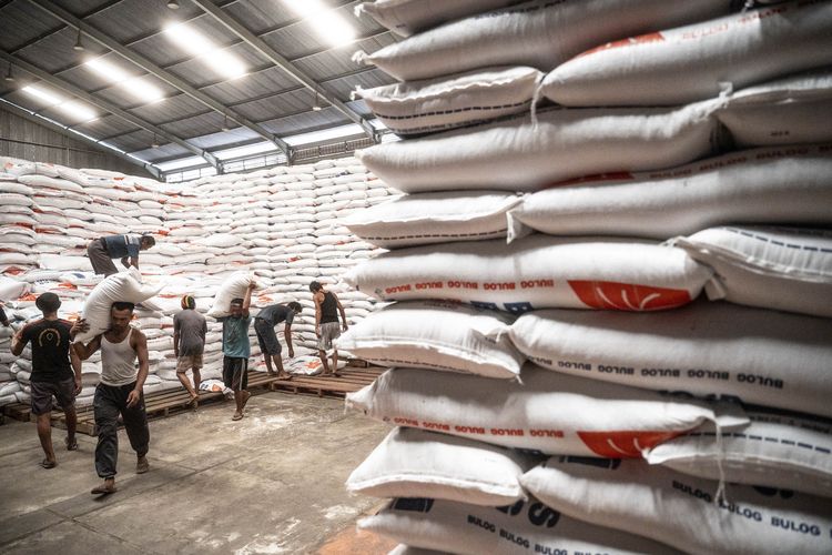 Dok, Photo: Pekerja mengangkut beras di Gudang Bulog Kelapa Gading, Jakarta, Senin (5/2/2024). Mentan Amran mengaku ditegur petingi negara karena membongkar mafia beras